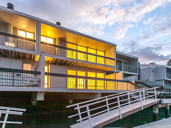 Sophisticated yet affordable home on San Francisco Bay! Over 2000 sq. ft. with lovely bright rooms. The Formal Dining Room and the Spacious Living room extend out to the large deck that overlooks the Marina. This home has a private deep water boat dock right off the back deck. You can enjoy your morning cup of coffee and leisure evenings upstairs on the balcony off the Master Bedroom. It's fun to join in or just watch and enjoy the paddle boarders, swimmers, and canoes go by.