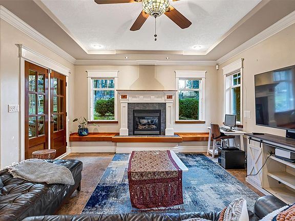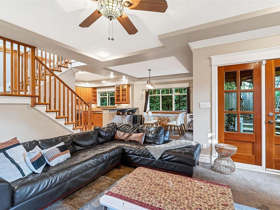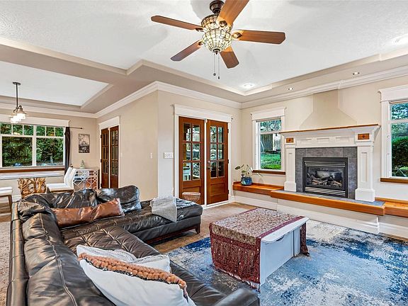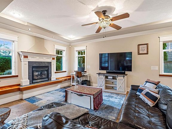 Originally the show home on this quiet, private cul-de-sac, this Arts & Crafts residence showcases quality craftsmanship and generous living spaces throughout. Beautiful finishing details include stamped concrete floors with radiant in-floor heating, solid fir cabinetry and doors, exquisite crown mouldings and baseboards, and a hand-crafted feature fireplace. The main level is designed for entertaining with an expansive kitchen, dining, and living area that flows seamlessly to the outdoors. Upstairs are three large bedrooms plus a spacious family room, highlighted by the luxurious primary retreat with spa-inspired ensuite, Jacuzzi tub, separate shower, and French doors to a private deck. Outside, enjoy a park-like oasis with open and covered patios, a dog run, full irrigation, and sun-drenched, fully landscaped grounds. A large double garage and additional RV/boat parking complete this exceptional package. This home truly impresses—make a point to view soon!
