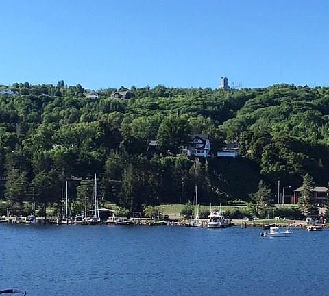 There are only a few homes with this view of the Lift Bridge, Houghton, and the Canal. Located in the historic East Hancock, this home includes a parcel in Franklin Township so that the view will NEVER be obscured by trees or other homes. This home is a gem that needs you to bring it back to its glorious past! So much classic appeal that begins with the beautiful brick exterior. Enter the home to find arched doorways, hardwood floors, a lovely living room fireplace flanked with built in book shelves and windows. The view from the dining room is beautiful both day and night. Imagine your master bedroom with a view overlooking the city of Houghton and the Canal. A huge deck adds to the family appeal to this home. The owner grew up in this home and remembers her father lovingly creating the steps to the backyard from Jacobsville Sandstone. The yard is flat, shady, and perfect for your family events.... the edge of the hill (and the beginning of the second parcel) is marked by a stone wall. This home has so many possibilities and is looking for the owner that can give it renewed life. The basement is actually a walk out basement. There is a sauna, but needs new stove and refurbishing. Both fireplaces are operational The home was completely rewired in 2013 and 2014, a new roof 2 years ago. The furnace is 8 years old. When you come see this home, imagine the possibilities!