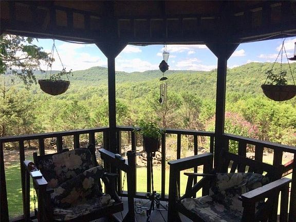 Breathtaking mountain views from this private and secluded remarkable estate within 10 minutes of Eureka Springs. Contemporary style home with fantastic 20' soaring native stone fireplace in living room, master on main floor, 2 beds & 1 bath up with 1 having a private balcony overlooking those magnificent views. New A/C, newer metal roof, paved driveway, gazebo, 30x40 shop building, (heated and cooled), plus an additional home site with its own well and septic. Stunning and must be seen to experience the ambiance.