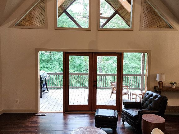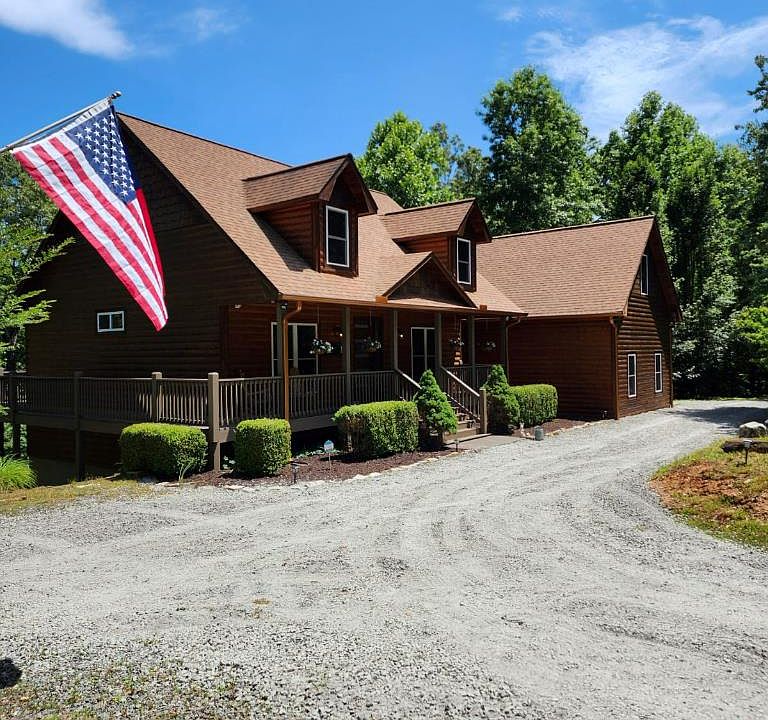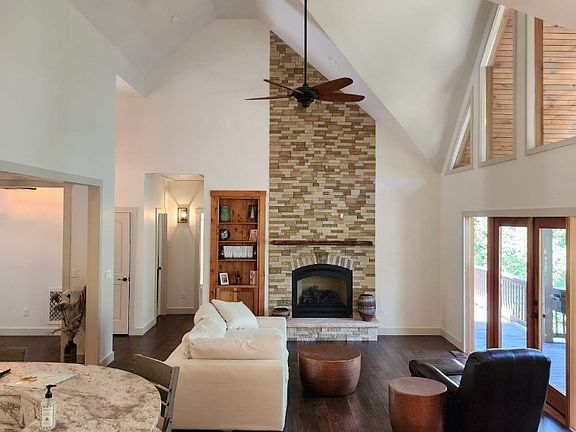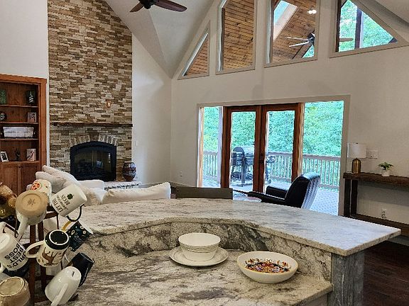 Pictures don't do it justice! Fully updated, move-in ready, “fly-in” mountain retreat nestled in Blue Ridge. A charming 4 bedroom, 4.5 bath home offers the warmth of a log cabin with the comfort of modern living. Open concept living bathed in natural light, covered patios, beautiful gas fireplace, greenhouse, Ring security system, acacia hardwoods, mahogany exterior doors, solid pine interior doors, vaulted ceilings, spa like master bathroom, two garages, dedicated workshop, private lake & airstrip, hot tub, pool table, & air hockey, w/ walking trail, gated entrance, and much moreA cozy firepit, huge walk out basement, and wrap around decks envelop this home. Plenty of kitchen cooking space and storage, butler's pantry, high-top bar, and leathered river white granite countertops. 7 minutes to charming shops, delicious restaurants, hiking trails, nature conservancy, boating and more