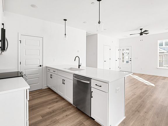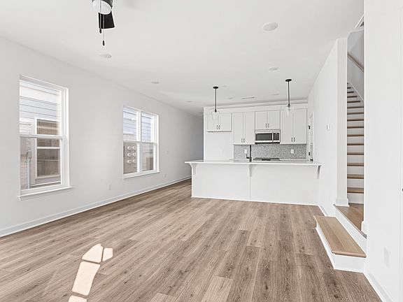 Come check out this END UNIT townhome with 2 car garage! Open floor plan featuring 9ft ceilings on both the first and second floor, Mohawk Revwood laminate flooring in 1st floor living area, kitchen and hallways, and hardwood treads on the stairs. Beautiful kitchen features quartz countertops, large peninsula island, tile backsplash, custom cabinets w/ soft close door and drawers & SS appliances! Main floor primary bedroom and bathroom features large glass enclosed shower with mosaic tile floors, and floor to ceiling tile walls, double vanity with granite countertops. Two large secondary bedrooms upstairs with open loft for entertaining! Williamson County Schools, Walk to Shops & Restaurants! Buyer to verify all information. Call for current incentives.