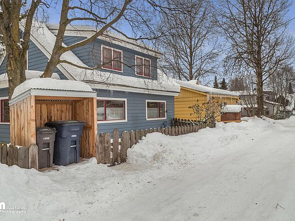 Darling downtown home with artistic flair! Hardwood floors pave the main level, with 2 living spaces & an adorable kitchen. Unfinished basement offers abundant storage & possibilities. Each BR includes a private nook, perfect for reading, painting, & more. Massive garage/shop for parking & storage. Highly rated Denali Montessori! Quiet alley access in front, 11th Avenue behind. Cute & cozy!