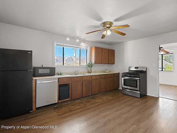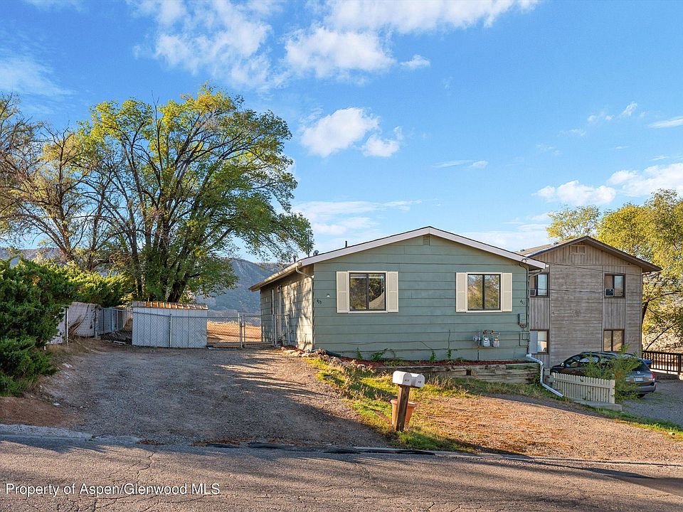 NO HOA, best views & great investment opportunity! Upstairs has three bedrooms, kitchen, living, bathroom and laundry. Separate entrance to downstairs with two bedrooms, second kitchen, living area and bathroom. Perfect investment property or rent up or downstairs and live in the other half. Previous tenants were paying $2,600 upstairs and $1,800 downstairs. Plenty of room for parking, either RV or two cars in both upper and lower parking areas. Walking distance to downtown Rifle's coffee shops, restaurants, stores, and movie theatre. Great views of the Colorado River and mountain ranges from the fenced rear yard. 10x8 storage shed. New water heater, washer and dryer.