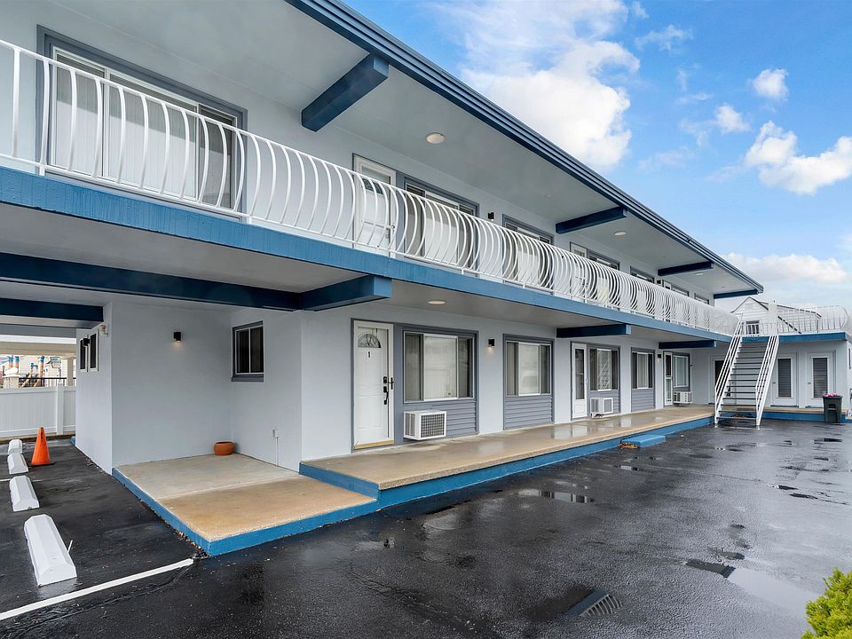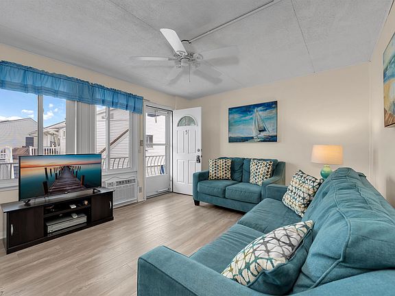 Beach! Boardwalk! Morey's Piers! Seaport Pier! Everything is right up the street. Enjoy this 2 bedroom 1 bath BEACH BLOCK condominium with your family and friends. This unit is set up to sleep 6-8 and is on the 2nd floor of a two story building. There are only 7 total units in this small, quiet, and friendly association. This is a "seasonal" condominium, open from April 1 to November 1. The condo was freshly painted (2018) and there is new luxury vinyl plank flooring (2019). The newly remodeled kitchen (2019) has white shaker cabinets, quartz counter tops, and stainless-steel Whirlpool appliances. There are ceiling fans in every room and three through-the-wall air conditioning units to keep you cool in the summer - one in each of the two bedrooms, and one in the main living area (new in 2023). Condo dues include insurances, water/sewer, electric, and gas. There is one designated reserved parking spot for this unit. There is a common area laundry room. There are two newly renovated (2023) common outdoor showers next to the laundry room. Every unit has its own private beach storage room too. Owners are permitted to have pets. Sale includes all furniture minus personal items and wall hangings.