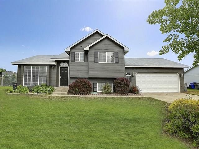 Located in the sought after Mead District. This home has fresh paint inside and out along with new flooring in the kitchen and new carpets. Spacious master has double closets and 3/4 bath. Upstairs laundry area, 3 additional bedrooms and 2 full baths. Outside entrance from the kitchen to a deck & large patio. Fully fenced back yard has sprinkler system and dog kennel with sheltered area access in the garage. Double gate opening to the backyard is perfect for a shop. A must see!!!
