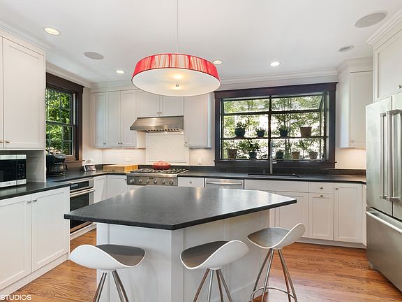 Classic charming Colonial in the heart of Lake Forest. Walk to everything from this 4 bedroom 3.1 bath home on a lushly landscaped lot. Bluestone walkway leads inviting front porch. Foyer opens up to the living room, sun room, and dining room. Eat in kitchen renovated by LaDuke, new mudroom, and cozy family room. Milled oak staircase with original finials leads to second floor with a beautiful master bedroom with large closet/dressing area and master bath. Two other generously sized bedrooms, loft space, and a hall bath complete the second level. Third floor offers an office, bedroom with sitting room, and bathroom with tub and skylight. Lower level has tons of storage. Private outdoor pavers patio and all fenced in yard. Across from the Gorton Community Center & John Hughe's Theatre. Easy walk to train and market square!