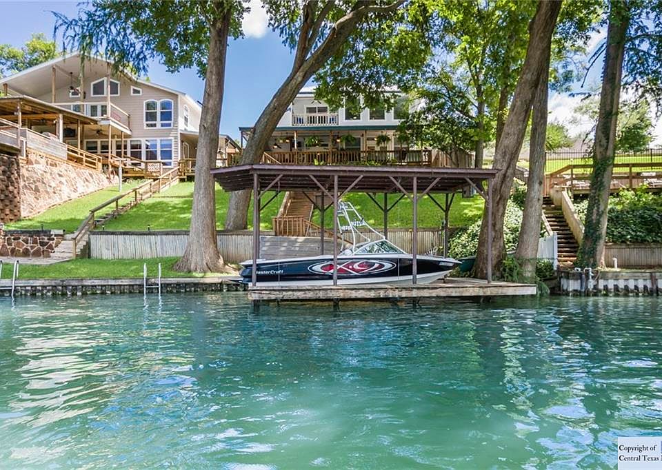 Amazing lake house sitting on prime, improved waterfront on the popular Lake Dunlap. Large covered deck provides beautiful views of the lake and offers large cool entertaining area. Features include: Boat house, Dual Masters, Outdoor kitchen, standing seam metal roof, open concept floor plan, large windows create tons of natural light and provides exceptional lake views, loft area, and large bonus room over garage. This incredible home rests by the clearest waters of any of the area's river style lakes.