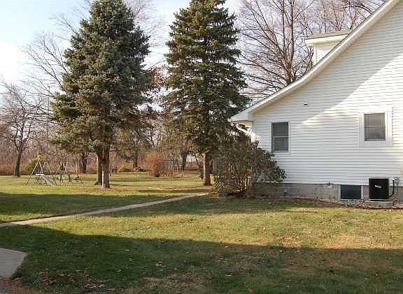 Charming home on .60 acre lot w/mature trees, mini barn, deck & playset. Lots of privacy. Peaceful setting. Front porch is covered & adds to the country charm. Finished garage w/workshop, half bath, attic storage & service door. Spacious master bedroom w/ceiling fan & recessed lighting. 3rd bedroom on main has full bath and spacious closet. Tile floor in kitchen & laundry rm. New furnace installed w/new ductwork 05, new front roof 08. Basement w/daylight windows. Close to shopping & interstate.
