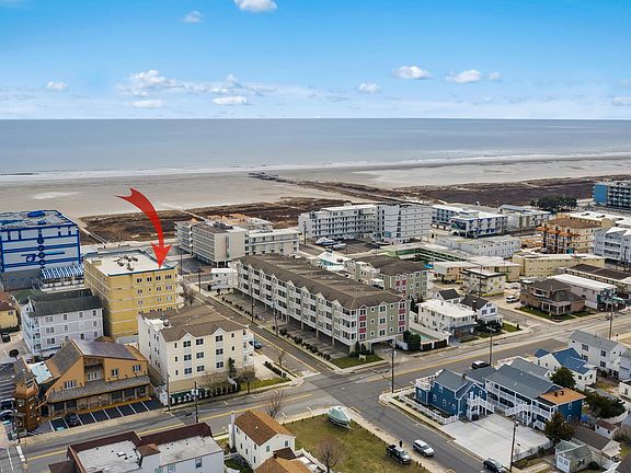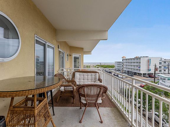 Enjoy ocean views from your 3 bedroom, 2 bath condo! An elevator leads to the 4th floor where you will make your way to your new vacation location. Enter to find a beautiful open plan boasting clean, bright décor and light wood floors that extend back to the bedrooms. An airy living room is highlighted by wainscoting, a queen sleeper sofa, and a door that leads to your private deck featuring amazing beach views and ocean breezes – a great place for morning coffee or evening drinks. The space flows to the dining area and kitchen where you will find a breakfast bar, white cabinets, ocean blue glass backsplash, and stainless-steel appliances. Head to the master bedroom offering a king size bed, a sliding door to the deck, and a private bath. The second bedroom hosts a queen size bed while the third bedroom has a full bed and 2 twins. A spacious hall bath is ideal for guests. This unit also has a laundry room with a stacked washer and dryer. Recent updates include new custom blinds, new AC condenser unit (2023), new interior line set (2024) and new water filtration system. Comes fully furnished minus personal items. Located in the Beachcrest Condos which includes a pool, hot tub, elevator, and 2-car assigned parking. This incredible unit is just steps to the famous Wildwood Beaches, boardwalk, and great restaurants are just a few steps away such as: Little Italy, Bagel Cafe, Bandanas, Mudhen and Dog Tooth. Fantastic rental history: almost $40,000 in rentals booked in 2024 so far! The condo fee is 2,372.38 per quarter and includes all common area maintenance for the pool, grill area and elevator, master liability, flood insurance, water, sewer, Wi-Fi and trash.