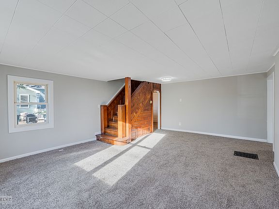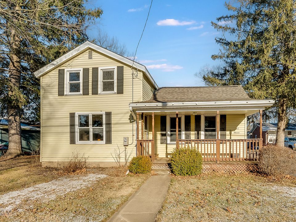 This Charming Traditional potential 3 Bed, 1 Bath with Vintage Style Front Door leading to Desirable Front Porch offers Adorable Cozy & Warm touches throughout this Home. Great Sized Eat-In Kitchen with All Brick, Gas Log Fireplace, offers New Flooring and Painted Cabinets. Spacious Freshly Painted Living Room with Brand New Carpeting, Showcasing an ALL Wood in-cased Stairway~Design & Wood coming from the Original Court House in Plano! Main Floor Bedroom and Main Floor Full Bathroom & Two Additional Bedrooms & a Den Upstairs. Brand New Roof, All New Carpeting, & New Paint Throughout Home. Mud Room & Laundry inside exterior back door or off the Kitchen, also leads to Basement. Detached Two Car Garage. Great Yard including Two Sheds. This well Loved & Well Kept Home has had the Same Owners for almost 40 Years!