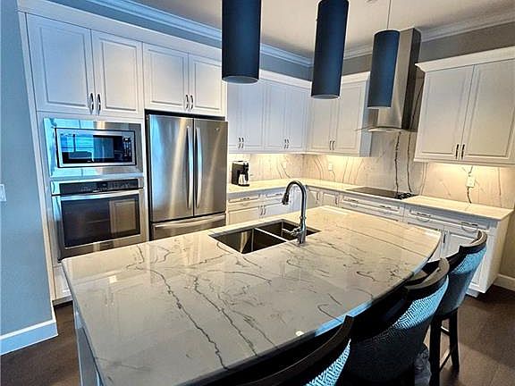 Versatile bonus roomOpen layoutWaterfront penthouseDark hardwood floorsModern kitchen with islandHigh-end stainless steel appliancesWhite cabinetry