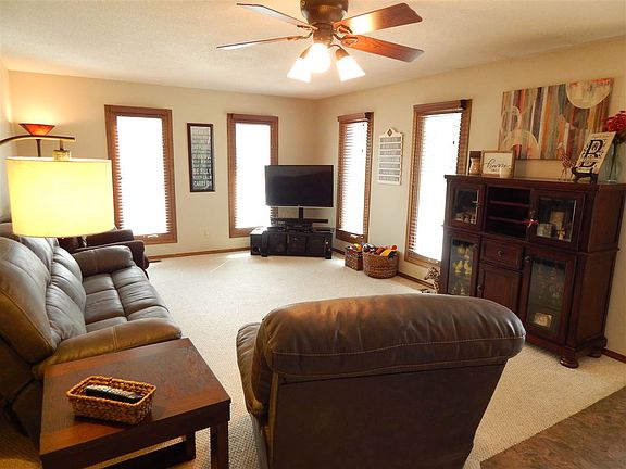 This move in ready ranch style home has the best of both worlds...in town living with the feel of country in the back. The living room features several windows for natural light. The kitchen boasts a large pantry, good lighting, and all kitchen appliances stay. The dining room features a coffered ceiling and a view of the trees and creek in the back. The laundry can be on the main floor and in the basement. The closet space in the bedrooms is generous. The basement is a nice space for gathering. The pool table and dart board will stay. The office has nice storage. The workout room and toy room are combined. The OVER SIZED garage will be missed by the current owners. The play set and basketball hoop also stay. Come check this one out for yourself before it is gone!