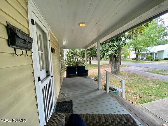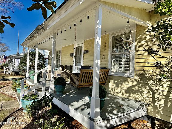 This historic beauty is a great combination of original construction & modern renovation. Located in the heart of Edenton's Cotton Mill Village this home offers custom kitchen cabinets w concrete counter tops, vaulted ceilings, dual sided gas log fireplace, solid wood beams throughout, original pine flooring & windows plus auto lighting in closets, unique stain glass windows in kitchen and great room. Two bedrooms feature bead-board on walls; bathrooms have heated flooring with thermostat. Fenced back yard, gravel driveway & detached garage/workshop w mini-split HVAC. NC Broker (Alice Stallcup)
