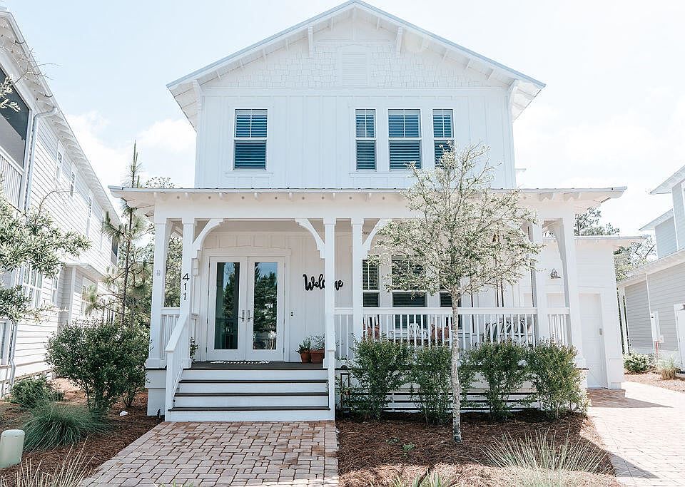 A perfect beach retreat or primary residence! This Windchime floor plan offers 5 bedrooms, 3 full baths, a large kitchen & living area, 1 car garage and is perfectly located in the back of a quiet circle in one of the most sought after neighborhoods around 30A! Upgrades include marble countertops, white oak hardwood flooring, gas fireplace, farmhouse kitchen sink, free standing master bathtub, floor to ceiling shower tile, added storage in garage, outdoor shower and more! Back porch is screened in and overlooks a serene nature preserve, watch the sunset on the oversized front porch across from the green space, swings & courts. Naturewalk amenities include heated lap pool, zero entry pool, playground, fire pit, grills, direct path to beach & more! A must see!