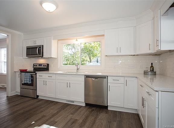 Newly renovated 3 bedroom 1 bath home nestled in the heart of Kannapolis. This home features all new floor coverings, soft close cabinets, under cabinet and can lighting, white quartz counter tops, new stainless appliances, custom tile shower, vinyl windows and fresh paint throughout. So much more to this property than just the house as it features a partially covered and uncovered rear deck great for outdoor entertaining. There is also a covered gazebo with a picnic area. Over sized 2 car detached garage with plenty of storage and wired for power. No HOA, close to downtown and public transportation.