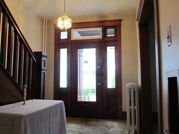 Great three bedroom brick home w/ pocket doors + beautiful woodwork! Lg second level full attic, and good sized private rear screened in porch re-plastered and painted throughout, remodeled bath,newer high efficiency furnace,off street parking with 1 car garage, working gas fireplace in living room,wood under carpets,1/2 bath in basement,replacement windows, appliances convey, a must see...