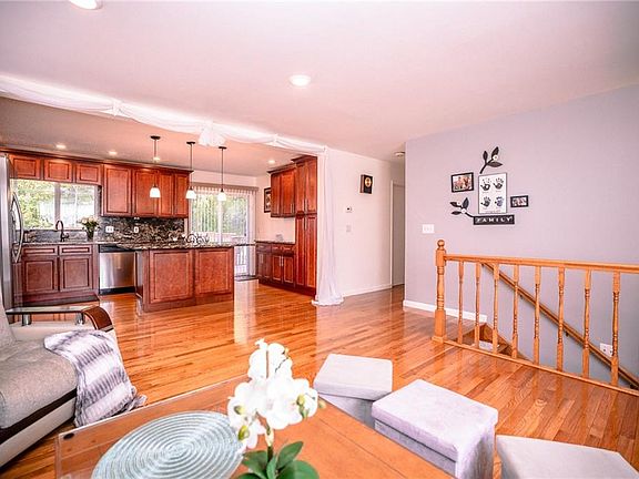 Welcome to this beautifully renovated just shy of 2,000 sq ft Raised Ranch in the heart of East Syracuse. Expect to be impressed from the moment you step inside. Greeted by gleaming hardwood flooring the upper level features a bright open floor plan! Spacious living room opens to an gorgeous custom designed kitchen- gorgeous Night Tiger granite countertops and backsplash, soft close cabinetry, stainless steel appliances including a wine cooler, and a large island. Sliding glass door leads to second story deck overlooking large fenced parklike backyard and no neighbors behind! Two generous sized bedrooms on second floor and updated full bath with granite countertops. Lower level features and in-law/teen suite equipped with a brand new full kitchen, living room, bedroom and half bath with separate shower! Lower level has a separate exterior entrance for privacy. With updates GALORE there is nothing left to do but move in!