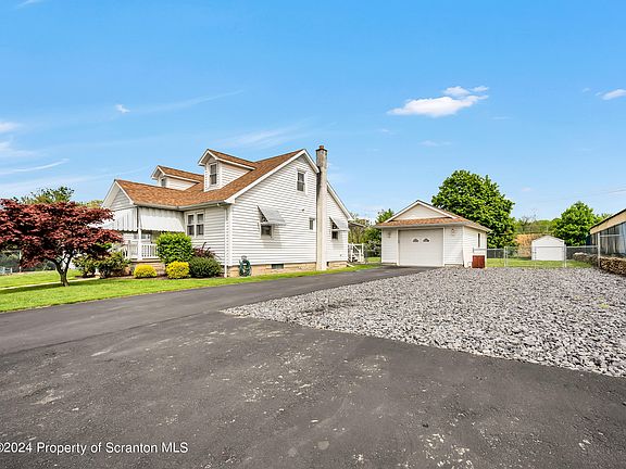 Convenience is key when looking at this Cape Code in Dupont, PA. Centrally located between Scranton and Wilke Barre; easy access to highways, dining, shopping, Montage Mountain, Railriders and Penguins games. Welcome to this delightful Cape Cod home which boasts main floor living, 4 bedrooms, two on the main floor and two upstairs. Upon entering, you'll be welcomed by stunningly refinished hardwood floors that flow throughout the home, adding a touch of warmth and beauty. The huge fenced-in yard has a ton of room for activities or simply relax on the large deck and patio area complete with Trex decking and vinyl railings. If parking is what you're looking for this house has it! Holy parking batman we can park some cars here. Don't forget about the deep, oversized one care garage plus an additional 19x6 storage shed in the rear of the property.