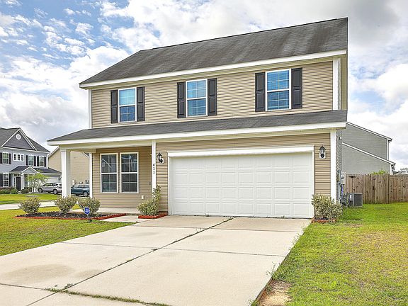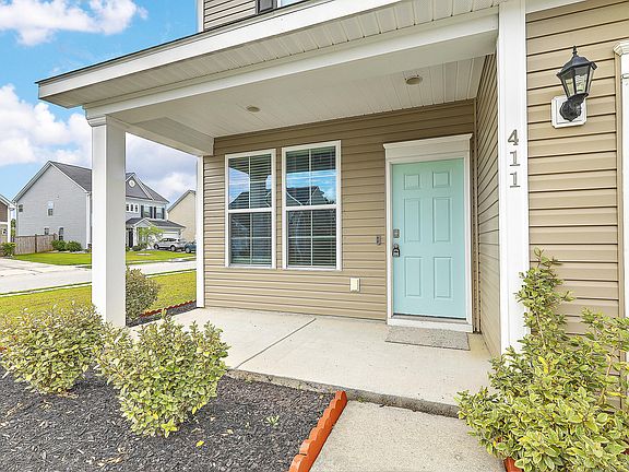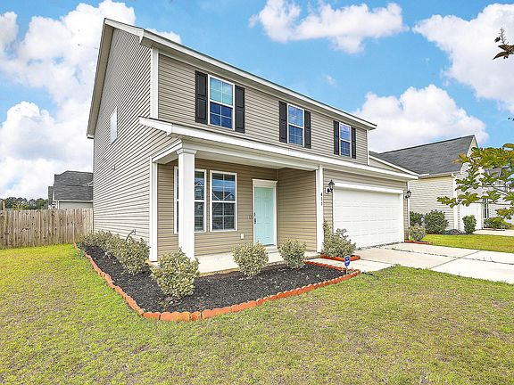 With BRAND NEW flooring throughout this corner lot home with the perfect pop of curb appeal is ready to shine. Located in desirable Sophia Landing, this gem features fresh landscaping, and greets you with a beautiful blue door on it's quintessential southern front porch. Once inside, plentiful windows let in natural light complimenting the brand new flooring. A flex space is located right off the foyer, which leads you into the main living area. Spacious, and airy, this layout is perfectly functional. The kitchen boasts granite countertops and stainless steel appliances. Upstairs you'll find a good sized loft, laundry room and the bedrooms. The Owner's Retreat is complete with a trey ceiling, plenty of room, and the ensuite featuring a soaking tub, separate shower, dual vanity with culture marble countertops, and a spacious walk-in closet. Two good-sized secondary bedrooms and another full bathroom complete the upstairs living space. The backyard is a clean slate complete with a concrete patio. The poles surrounding the patio have a canopy that attaches that is currently being stored in the garage for safe-keeping. A wooden privacy fence and play set complete this simple, yet functional outdoor space. Amenities include a neighborhood pool, clubhouse, play park and plenty of sidewalks. Located centrally in Goose Creek near military bases, highways, shopping and historical landmarks.