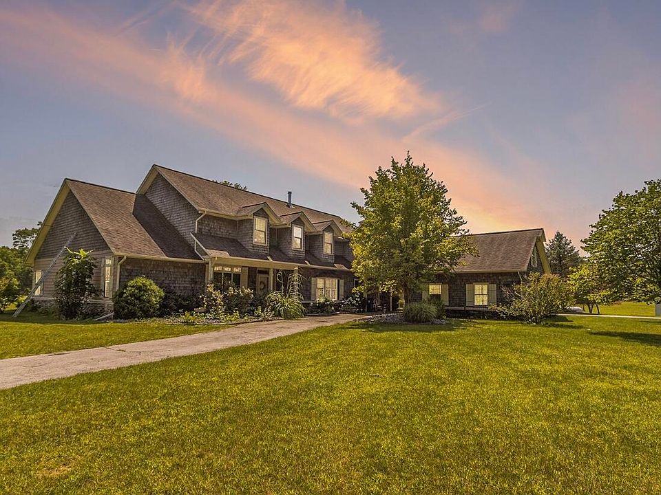 Welcome to 411 Grass Lake Road! Walk in and fall in love with this gorgeous 4-bedroom, 3.5-bath spacious home situated on 7.2 acres. The kitchen is a chef and baker's dream! It boasts a large center island, beautiful cherry cabinetry, granite countertops, 2 ovens, 2 refrigerators and a HUGE walk-in pantry. WOAH! Just off the kitchen is a breakfast nook, perfect for your morning coffee with stunning views of the property and private pond. You will also appreciate the main level laundry room conveniently located just inside the secondary entrance to the home. The open concept family room has a beaut beautiful wood burning fireplace, cathedral ceilings and is only one step away from the 3-seasons room, perfect for relaxing evenings. The formal dining area offers large built-in, lighted cabinets. You will not be disappointed with the main floor master suite featuring a large walk-in closet and double vanities. Home also features radiant heated floors in the family room, dining room, kitchen and1/2 bath on the main floor. Upstairs there are 3 bedrooms, 1 with a private bathroom. Also, a Rec room with a wet bar perfect for game or movie night! The foundation and outside walls of the first floor have been constructed using insulated concrete forms or ICF, adding energy efficiency to this solid home! Outside you will notice the spacious two-car garage with a portico attached to the house! If that is not enough space for you, don't worry, there is a barn just a short walk from the garage for all your additional storage needs! As if it couldn't get any better, this home is located less than 1 mile from Rose Lake Public Access (0.8 miles to be exact). This serene property awaits you!