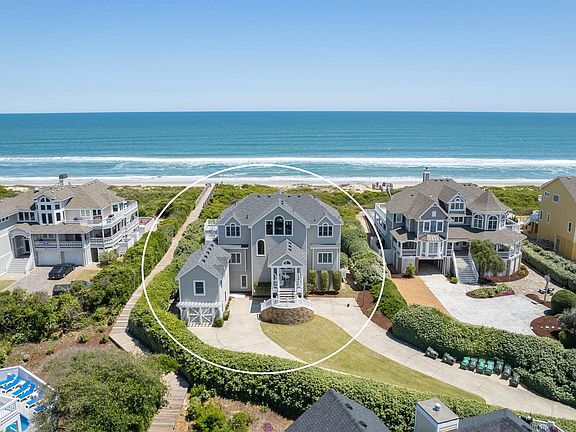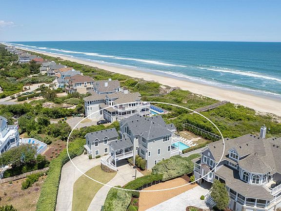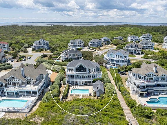 Welcome to 411 Great Gap Point, a luxury listing and prime investment opportunity on the oceanfront offering three separate venues in one to include a main estate, guest house, and pool cabana, all situated on an elevated oceanfront parcel located on a private cul-de-sac in the renowned Pine Island community of Corolla, NC. With over 5,400 square feet of total living space, this home boasts classic coastal elegance and comfort throughout with a professionally reappointed interior to include 8 en suites in the Main House (9 en suites total), three levels of living space, an elevator, game room with wet bar, poker and pool tables, an updated gourmet kitchen w/ WOLF double oven, two dishwashers, granite countertops, island & dining seating, a gas fireplace, second wet bar, and spacious sun and covered decks on the east and west showcasing the unforgettable panoramic views of the ocean throughout. A separate Guest House is the perfect place for additional privacy as it boasts two stories to include a king en suite, full bath, laundry, and living room for added privacy to relax and unwind. The pool cabana house with french doors opening out onto the spacious grounds surrounding the private heated pool, spa, and dining terrace, offers convenience with two separate showers, a bath, changing area, and additional storage space. Direct shared beach access leads you from the main house, guest house, and pool cabana onto the wide sandy beaches of Corolla steps away. You will certainly appreciate the well vegetated dune line and proactive HOA in Pine Island that offers added safety and security on your investment. Don't miss this one-of-a-kind and unique opportunity for a turn-key ready income producing residence featuring three separate venues for families and friends to gather and soak up all the beauty that Outer Banks oceanfront living has to offer!