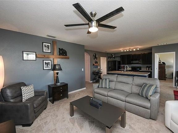 • Interior Features: Ceiling Fans(s), Master Bedroom Downstairs, Split Bedroom, Walk-In Closet(s), Window Treatments, Open Floorplan, Solid Wood Cabinets, Attic Ventilator, L Dining, Thermostat