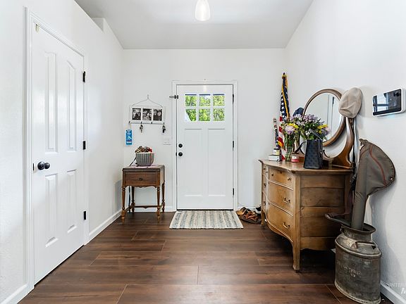 Hard to find single level home featuring an enormous Bonus/Theater room + an Additional Great Room. Gather your loved ones and friends for movie nights or that big game. Gorgeous, renovated kitchen--crisp white cabinets, double oven, double stack utensil drawer, and custom shelving pantry door. A chef's dream! Relax beneath the lush back patio arbor enjoying the privacy of mature trees, gorgeous landscaping and raised bed gardens. Enormous new back deck. Perfect for cookouts! Four large bedrooms offer plenty of space for a home office. New double sink vanity in the primary suite bath. ADU potential. Spacious two car garage angled for charming curb appeal. Solar panel system to offset your monthly utility costs (please inquire for details). Park like setting that takes years to grow in the Idaho Snake River Plain. Close to amenities, shopping, and I-84. Minutes from Lake Lowell, hiking, fishing, kayaking and boating at Deer Flat National Preserve. Don't miss this rare opportunity.
