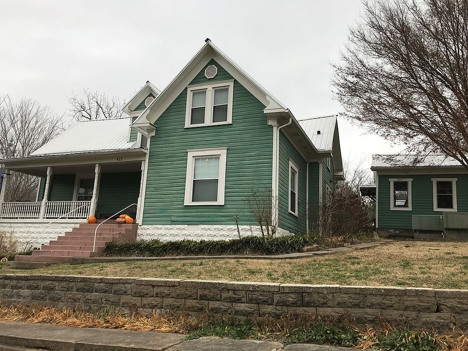 Historic Queen Anne Style Home For Sale in Leslie, Arkansas This 2416 sq ft home, located in historic Leslie, Arkansas, has been completely restored. It sits on three and one half city lots which is approximately 0.68 acres. It was originally built in 1907 in the Queen Anne style. This historic home is listed on the National Register of Historic Places. The floors are the original oak and pine. New insulation, new sewer lines, water lines, wiring and electrical boxes and new fixtures in the kitchen and bathroom were added approximately seven years ago. A new metal roof was added in 2016. A soapstone wood heater vented through the old chimney with stainless steel insulated pipe creates a cozy area to relax in the open living area. This home has four bedrooms and two full bathrooms. The master bedroom and one bathroom are on the lower level and three bedrooms and one bathroom are on the second level. A large walk-in closet is on the second level as well as a sitting area/play area. The kitchen opens up into a large dining area. Central heat and air service the downstairs and an attic fan and window units the upstairs. Outside in the beautifully landscaped gardens, you will find a native stone patio and firepit for outdoor enjoyment. There are a variety of fruit trees and berry bushes and plenty of room for your own garden. A nice garden shed provides a place for gardening and storage. A four car detached garage and carport has four bays; two are open and two are enclosed with garage doors. A chicken coop/yard is available for your own chickens. City water and sewer service the house currently, but there is an old hand dug well on the property as well. A cellar below the house is well kept and makes a great storage area. Great Location in the Natural State of Arkansas This little bit of history is located in the central Ozark mountain area near the Buffalo National River, Mountain View and the Ozark National Forest and Greers Ferry Lake. There are many opportunites for hunting, fishing, boating, and recreational activities nearby.