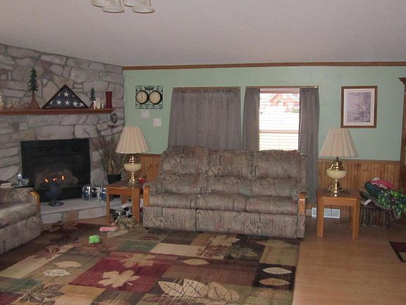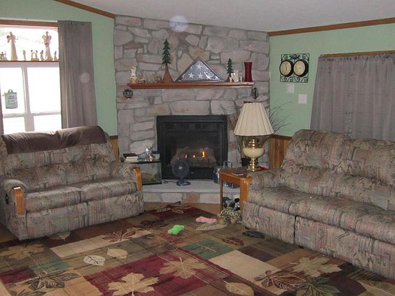 New York Mills 3 bedroom 2 bathroom home conveniently located in town but has a rural feel on a 1 acre wooded lot. Built in 2006 this home has an open floor plan featuring a natural gas fireplace surrounded by stone, a large kitchen with a skylight highlighting the center island, a spacious master suite and bathroom with whirlpool tub, separate laundry room and two living areas. The detached garage has been recently insulated and sheet rocked, giving this property plenty of storage space. Enjoy the great outdoors on one of the two decks and enjoy the sights of a beautifully landscaped yard. Home is also wheel chair accessible with a ramp.