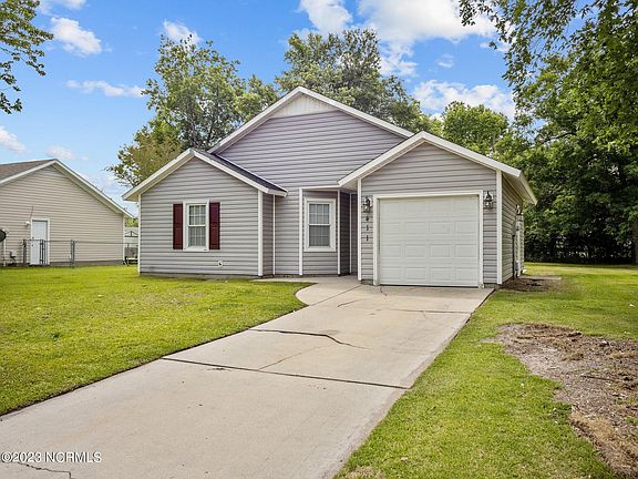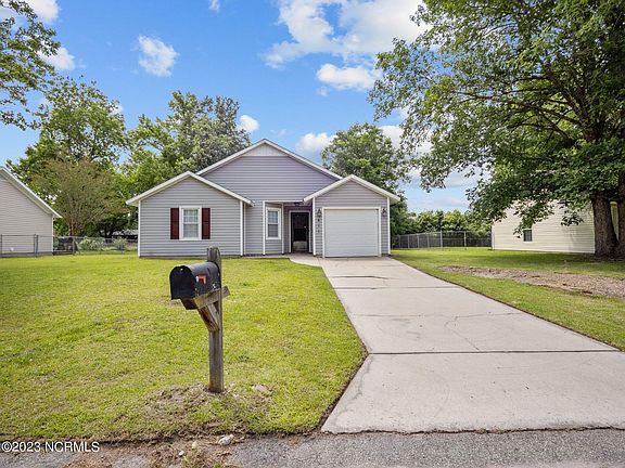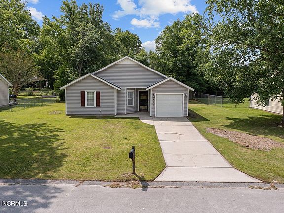 Situated in the quiet subdivision of Deerfield, this 3 bedroom, 1.5 bathroom home has much to offer! As you step inside, the home has a light and airy feel. The living room is impressive, with a vaulted ceiling and many windows allowing natural light to seep in. The kitchen has ample counter space and opens to a dining nook. Off the dining area lies the roomy primary bedroom and attached half bath. Down the hall are two additional bedrooms and a full bath. The backyard is huge--perfect for kids and pets! Deerfield is convenient to Camp Lejeune, local restaurants, and shopping and is located outside city limits. Schedule your showing today!