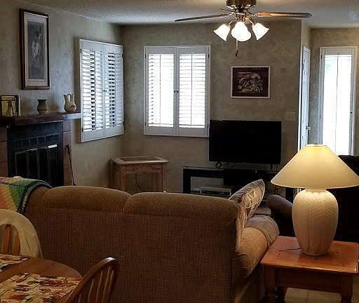 You will want to see this wonderful and spotless 2 bedroom 1 3/4 bath townhome with a 1 car garage and covered patio in back. All living room and bedroom windows covered by wooden plantation shudders. Living room walls beautifully sponge painted and really stand out.The homeowners warranty has just been renewed and will transfer. This wonderful property is being sold as a mostly furnished package. Come see, show and sell. Your buyers will thank you.