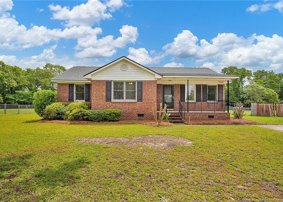 Adorable brick home with detached garage on almost a half acre lot in Raeford. Home greets you with a darling front porch, and inside opens up with a vaulted ceiling in the the living room and gorgeous floors. Open floor plan offers dining area and kitchen. Hallway leads to two guest bedrooms, laundry, and large guest bathroom. Master bedroom has private ensuite bathroom. Seller is offering up to $2000 decorating allowance.