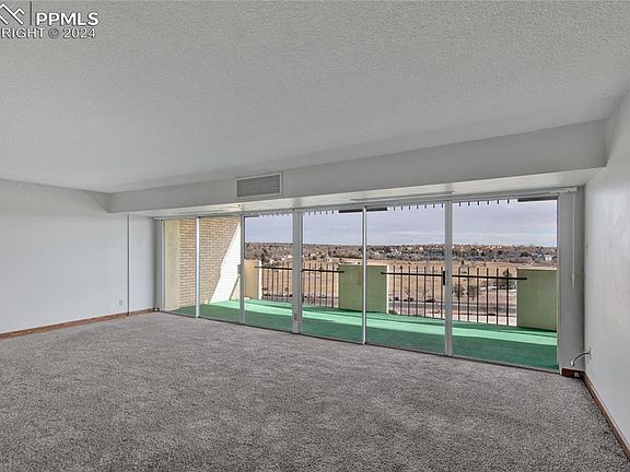 Enjoy maintenance-free living at the Satellite, a Colorado Springs landmark! The property is located on the 11th floor and provides eastern views from the covered patio that extends the length of the unit providing wonderful natural light throughout the space. The living area has a spacious great room, dining area and kitchen with plenty of storage and counterspace. The large bedroom has access to the full bath and also walks out to the covered patio. Monthly dues cover all utilities, insurance, maintenance and management. Each floor has a community laundry and trash receptacles. Amenities of the Satellite include an outdoor pool, exercise room, meeting space and even a restaurant on the main level. On-site parking is plentiful and garage spaces may be rented based on availability.