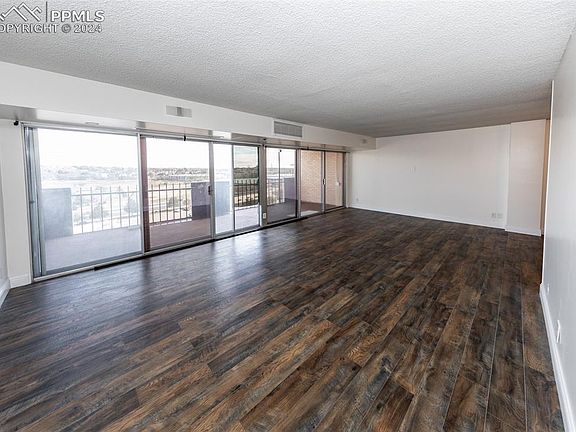 Opportunity to own a top floor Condo in the ICONIC Satellite building! Bring your imagination and see how you can tailor this condo to your exact taste. Coveted garage space available. Come home to this historic Colorado Springs landmark and stroll the runway to enter your condominium every day. Experience the ultimate convenience of having all of your utilities, endless amenities, and maintenance a phone call away included in your HOA. Also INCLUDED in your monthly HOA, ALL utilities (heating, air conditioning, electricity, water, sewer, trash, exterior insurance saving your interior premium, RV parking, access to all amenities (pool, 2 exercise rooms, 2 libraries, a billiards room, 2 saunas) security cameras in the parking lot, plenty of lounge/sitting areas to get to know your neighbors, or read a book by the fire. Conveniently located in the building a restaurant, bar, beauty shops, and convenience of onsite HOA staff . Enter in to the lobby where you are greeted by concierge before taking the newly renovated elevators upstairs to your home. Step inside and be awed by the wall of glass, overlooking the city creating an immediate indoor/outdoor experience. Galley kitchen with built in oven and range cook top and ample counter space providing plenty of prep area for a meal or an evening night cap. Kitchen gives way to the dining area, which flows into the living room giving an open concept feel to the space. Step through the living room balcony doors. Enjoy the incredibly large balcony space, making indoor/outdoor entertaining a breeze. Spacious primary bedroom featuring walk in closet and private balcony access. Generously sized secondary bedroom, which also has full access to the balcony. Although there is space for guests, should they require a more private stay, you get discounted hotel rates for their privacy and your convenience. Ballroom available for use as well. Schedule your tour today.