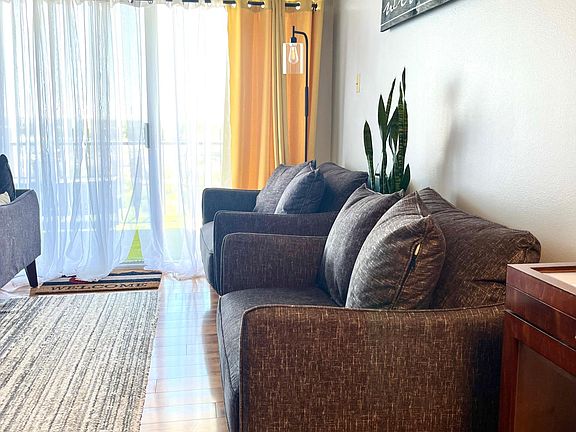 FULLY FURNISHED 2 bedroom condo with 2 full bathrooms. Amazing views from every room in this sprawling 12th floor condo. Views of Cheyenne Mountain, golf course, and pool. Beautiful wood floors in living room and an abundance of natural light with wall to wall windows. Rent includes all utilities: central AC, water, sewer, trash, parking lot security, and wifi. Amenities in the building include outdoor pool, exercise facilities, billiards room, library, elevators, lounge/cafe and more! This unit is right next the laundry facilities which is a shared room for occupants on this floor only. Month to month lease with option for 3-6 month lease. $1,800 security deposit. Simple qualification process No credit requirements with additional deposit No prior evictions HOA will only allow registered service animals Month to month lease with option to lock in a 3-6 month lease. No indoor smoking, smoking on balcony/ outside only.