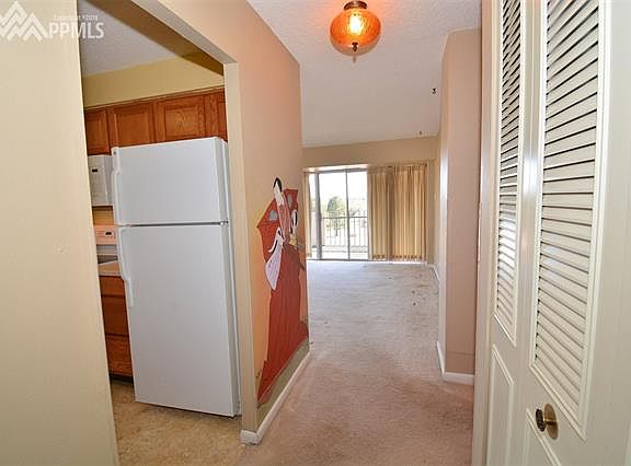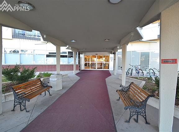 Nice End Unit with South & Southwest Views Of Pool, City & Cheyenne Mountain. Huge Wrap Around Covered Balcony.Cozy Kitchen. Sliding Glass Doors Across East & South Sides. 1 Car Garage Parking. Pool, Tennis, Exercise Rooms, Convenience Store, Lounge, Restaurant, Beauty & Barber Shop On Site