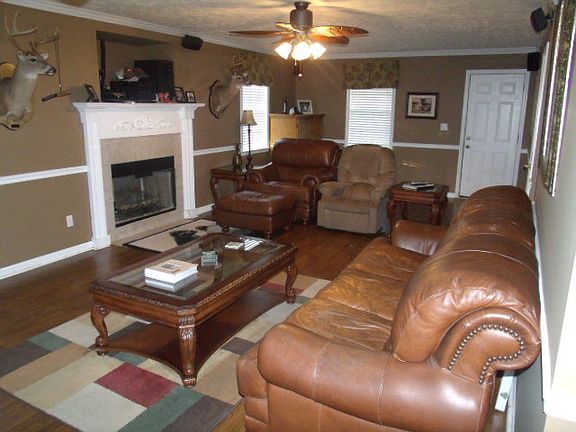 This is your year to make a move! The key to this beautiful home can be yours - huge great room is perfect for entertaining or family gatherings it has gas log fireplace and ceiling fan, the eat-in kitchen has refrigerator, stove, and dishwasher, large owners suite has private bath and walk-in closet, 2 additional spacious bedrooms each with ceiling fans. Other features include hardwood floors in great room and hallway, chair rail and crown molding, laundry room large enough to leave ironing board up, French doors leading to privacy fenced backyard with outside storage building, concrete patio, and plenty of room for children and pets to romp and roam.