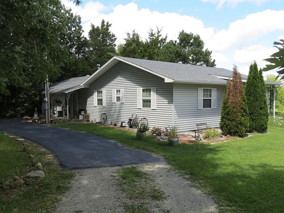 Greenfield, Mo. City limits a park like setting 6.75 Acres m/l mini farm. Very private, 2 bedroom 2 bath home with 1848 sq.ft. CH/A, family room, nice size living room, partial basement. 1 car garage attached ,1 car garage detached, carport and 2 work shops. Big garden spot, fruit trees, pond. Enjoy your peaceful setting on a 8x13 deck.6 miles to Stockton Lake