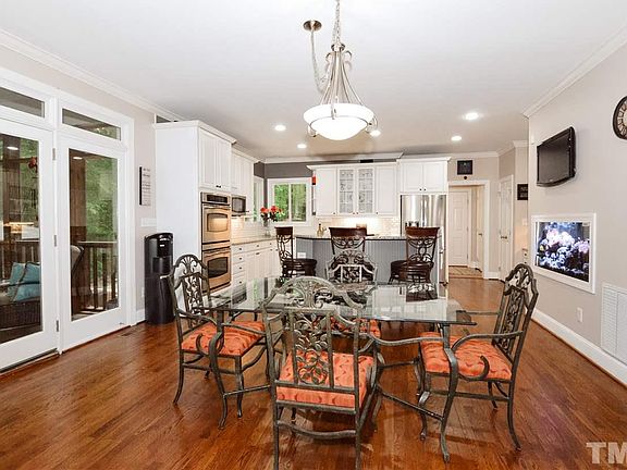 Amazing property w/ 10+ acres, fully stocked pond, updated appointments, panoramic views and large 1st floor master suite w/huge custom closet system. Enjoy an open floor plan & huge bedrooms. Closets & storage areas are impressive. Revel in the privacy of countryside living & the convenience to shopping, dining, Lake Jordan, RDU & RTP. (5) minutes to I540. Large open & screened decks are accessible from the dining areas. A screened "gazebo" offers a hibachi grill setup and eating area for 8-10. Must see!