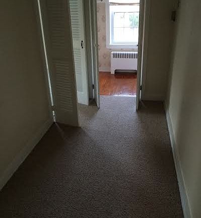 2 bedroom, I bath 2nd floor apartment with separate dining, living room and small kitchen. Wall to wall carpet and central air. Heat pump. Large deck. Shared back yard. Apartment in very good condition and ready to move into. Tenant pays electric. Water, sewer, trash included.