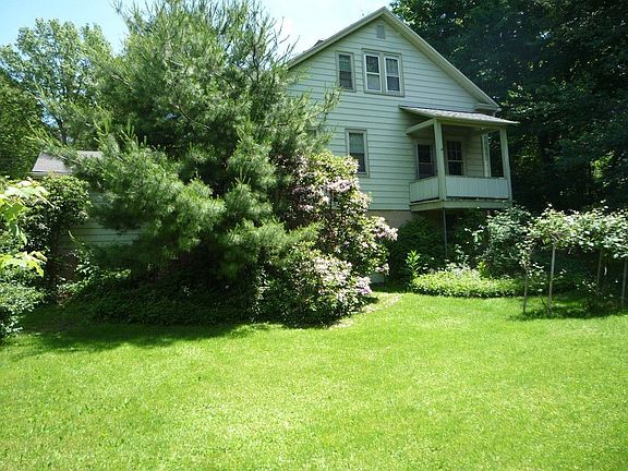 Classic bungalow with lots of original wood flooring, trim woodwork, and charm. Plenty of 1920s character in the lovely living room with wood burning fireplace and dining room with built-in corner hutch and large window seat. The kitchen is a blend of old and new with a large built-in eating area/counter, tile backsplash, some newer cabinetry, and an old-style pantry. Also on the first floor is a bedroom/sitting room with closet, and a full remodeled bath. Upstairs is the master and two additional bedrooms, all with decent closet space; another full remodeled bath; and a sizeable upper hall/landing area which would make a great office or family activity area. There is a full, unfinished walk out basement, one-car detached garage, a small service porch in the rear, and a wonderful rocking chair porch along the front of the house. Other amenities include a newer furnace, separate oil fired hot water heater, newer architectural shingled roof on the house, and public utilities.