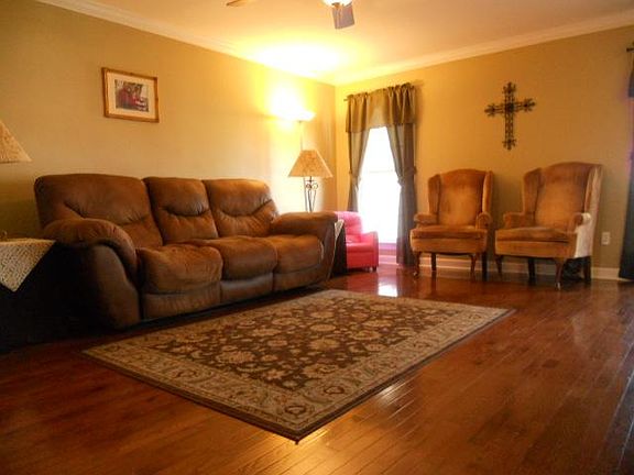 CUTE!! 3 BR, 2 BA home, nice size rooms, split BR plan, Hardwood floors in Greatroom, hallways and foyer, open floor plan, kitchen w/eat in bar, new DW and refrigerator, microwave, stove, pantry, Master bath w/double vanities, 2 car garage, concrete driveway