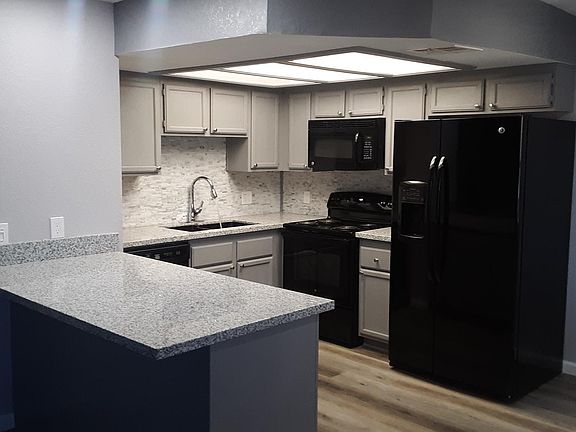 THIS UPPER UNIT AT ROCK SPRINGS 1 IS ALL NEW.NEW VINYL PLANK,NEW CARPET,NEW LIGHTING,NEW GRANITE COUNTERS AND BACKSPLASH,NEW STOVE,NEW PAINT,NEW BASEBOARD,WASHER AND DRYER INCLUDED CEILING FAN ALL TEXTURED CEILING WAS SCRAPED AND RE DONE ,NEW COVERED PORCH CARPET,YOU WILL NOT FIND ANYTHING NICER! COVERED CARPORT,COMMUNITY POOL AND SPA,BASIC CABLE INCLUDED.SEPERATE LOCKED PRIVATE STORAGE ROOM INCLUDED.AVAILABLE NOW . SHOWING BY APPT ONLY WITH CURRENT TENANTS AFTER APPLICATION IS MADE THIS UNIT IS IN ROCK SPRINGS 1. SECOND FLOOR UNIT.TOTALLY REMODELED,SEE ATTACHED PHOTOS.LEASE IS 1 YEAR DURATION.DEPOSIT EQUAL TO RENT.NO SMOKING,NO PETS.LEASE INCLUDES BASIC CABLE,WATER,SEWER,TRASH,POOL,EXTERIOR MTCE,1 COVERED CARPORT INCLUDED.ALL NEWER APPLIANCES INCLUDING WASHER/DRYER.TENANT PAYS ELECTRICITY.EXCELLENT AND QUIET LOCATION.ALL PERSPECTIVE TENANTS WILL APPLY THROUGH ZILLOW WHICH WILL INCLUDE CREDIT REPORT,APPLICATION AND BACKGROUND CHECK.PROSPECTIVE TENANTS MAY DRIVE BY ROCK SPRINGS 1 BUILDING 411. ALL SHOWINGS WILL REQUIRE APPLICATION PRIOR TO SHOWINGS.AT LEAST INITIAL APPLICATION STATING CURRENT RENTAL SITUATION.CURRENT LANDLORD,AND AFTER INITIAL APPLICATION CREDIT AND BACKGROUND CHECK THROUGH ZILLOW.RENTAL PRICE IS EXCELLENT AND GEARED TOWARD EXCELLENT AND RESPONSIBLE TENANTS.I CAN EMAIL YOU PROSPECTIVE INITIAL APPLICATION AND SS# WILL NOT BE REQUIRED AT THAT INITIAL APPLICATION AND NO CHARGE FOR THAT APP.THANK YOU.CURRENT TENANTS ON LEASE TILL 8/11/2024.POSSESSION DATE MAY BE NEGOTIATED.DO NOT APPROACH TENANTS.SHOWING CAN BE SCHEDULED WITH THEM WITH LANDLORDS' APPROVAL