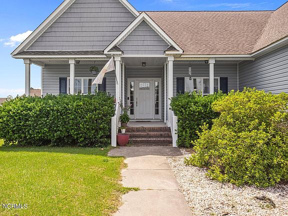 This spacious 3-bedroom, 2-bathroom + BONUS ROOM home is located in the desirable Coldwater Creek subdivision. Just minutes from the pristine beaches of Emerald Isle and the quaint town of Swansboro...you could not ask for a better location. Step onto the covered front porch and enter the front door and notice the true hardwood flooring throughout the living space. On the right is the formal dining area while the living room is straight ahead. The kitchen overlooks the living space and also has an eat-in nook, perfect for your office or breakfast table. The kitchen is appointed with stainless steel appliances, granite counter tops, and a pantry. The primary owner's suite is on the left of the home while the two guest bedrooms and guest bathroom are over on the right. The owner's suite includes a spacious, fully equipped en suite and large walk-in closet. Rounding out the main floor, there's a laundry room with a door leading to the 2-car garage. Upstairs, there's a large bonus room over the garage. Out back you will find an inviting covered porch and a large heated/cooled workshop/storage building. To help the buyers settle in, the sellers are offering a $7500 ''use as you choose'' allowance so make your appointment today and secure this one before it's too late.