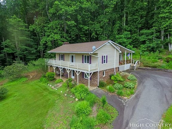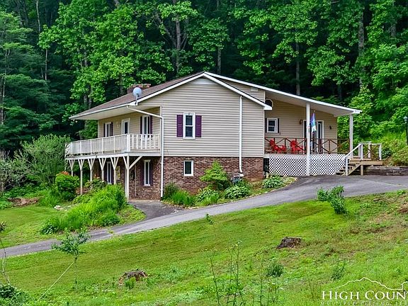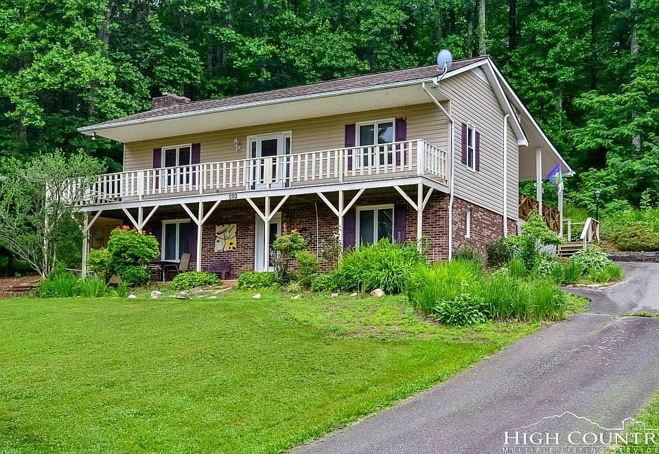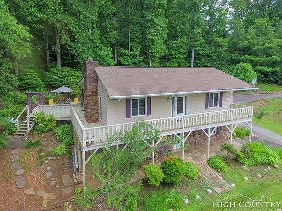 Best priced house in the Town of West Jefferson with a great, private end-of-street location. Two lots combined with mountain forest as your backdrop, and yet within walking distance to town, park, library and more. Over 2,400+ sq. ft. of heated living space on 2 levels. 3BR/3BA. Main entry family room features vaulted ceiling with skylight & walk out private patio deck for entertaining. Living room with gas log fireplace and the kitchen flows with open floor plan. Lower level features large bedroom and bath. Great potential in-law suite with walk out to a stone patio area overlooking the landscaped front yard. Tucked in the corner is a tool shed for all your gardening needs. Adjacent lot offers much added value, and this house has location, location, location plus a beautiful picturesque setting. Must see!