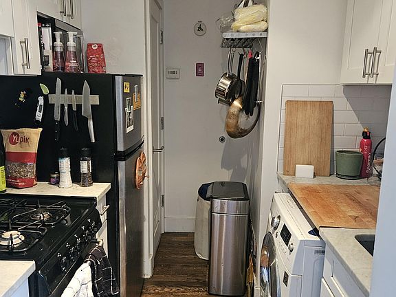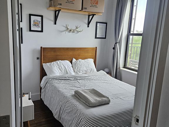 (Private Balcony) (Washer and Dryer) Real one bedroom, boxed layout, super sunny, windows in every room, located in a beautiful, immaculate bldg., few blocks to G and Q trains, in the heart of Clinton Hill with Shops, Bars, Cafes and Restaurants at your feet, and a balcony to sip coffee and wine at your relaxing terrace . Apartment has a washer and dryer combo, and stainless steel appliances, located on the 5th floor, no elevator in the building, is this gorgeous rent stabilized apartment . Video intercom , nice size bedroom fits queen size bed, open living room, with a private balcony, beautiful gallee kitchen with antique white kitchen cabinets, carrera marble countertops, stainless steel appliances, stove, refrigerator and dishwasher, Additional alcove dining room, gorgeous hardwood floors throughout, 4 closets, New efficiency boiler, Tenants pay for all the utilities. September 1st occupancy. Pets are ok. Fees associated with this rental: $3200.00 September 1st Rent. $3200.00 Security Deposit. $20.00 Per applicant credit check.