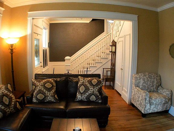 Beautifully restored Victorian home with formal living and dining. 3 bedroom, 1 1/2 baths, large den off kitchen. Original craftsmanship shows in stunning staircase, detailed bookcases and trim work. Two functioning fireplaces and original hardwood flooring. Home is a great mix of historic features with modern flair. Covered carport. Enclosed sun room with brick barbecue and hot tub.