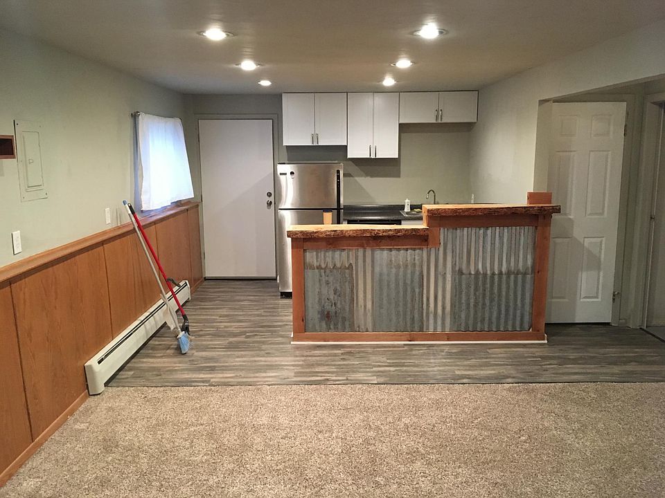 $950 / month. $950 deposit. Bright garden level studio apartment with you own attached garage with plenty of storage. Near high school in nice residential neighborhood. Shared backyard with upstairs apartment. Washer and drier included in your apartment. No pets. You pay 1/4 of gas/electric and 1/4 of water/trash. Cozy up to the gas fire on a cold Bozeman night. 950 /mo. 1/4 of trash, water, gas, electric