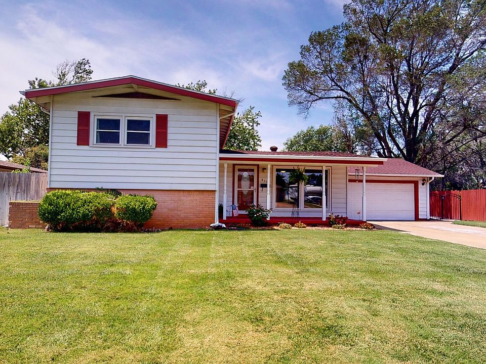 Very open floor plan in this tri-level, west side home. Main floor features spacious living room with lots of natural light, kitchen with plenty of counter space and stainless appliances and a dining space with sliding doors that lead out to a covered deck and fenced back yard. The upper level features 3 bedrooms and a full bath. A short stairway down to the lower level is where you will find an gas fireplace, good sized family room, separate laundry room and a 1/2 bath. This home is very well maintained, has a good sized shed out back and has a 2 car garage. Great neighborhood with shopping, schools and restaurants close by.